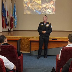 Урок мужества был проведен 1 октября 2025 года в ГБПОУ РО «Ростовский-на-Дону колледж водного транспорта».