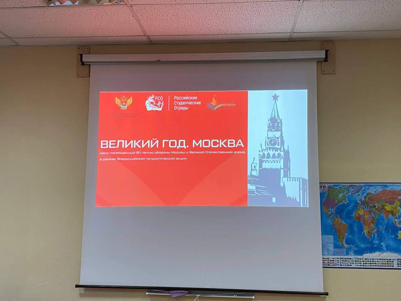 10 ноября 2022 в группах Т-31 (кл. руководитель Епишева А.А.) и Т-21 (кл. руководитель Казанцева Ж.А.) прошел квиз «Великий год. Москва», посвященный 80-летию обороны Москвы и Великой Отечественной войне, в рамках Всероссийской патриотической акции. Необходимость проведения таких мероприятий очевидна, ведь ребята не только узнают что-то новое в истории страны, но и заряжаются духом патриотизма и гордости за свою Родину, свой народ, а также учатся логически мыслить и взаимодействовать в команде.