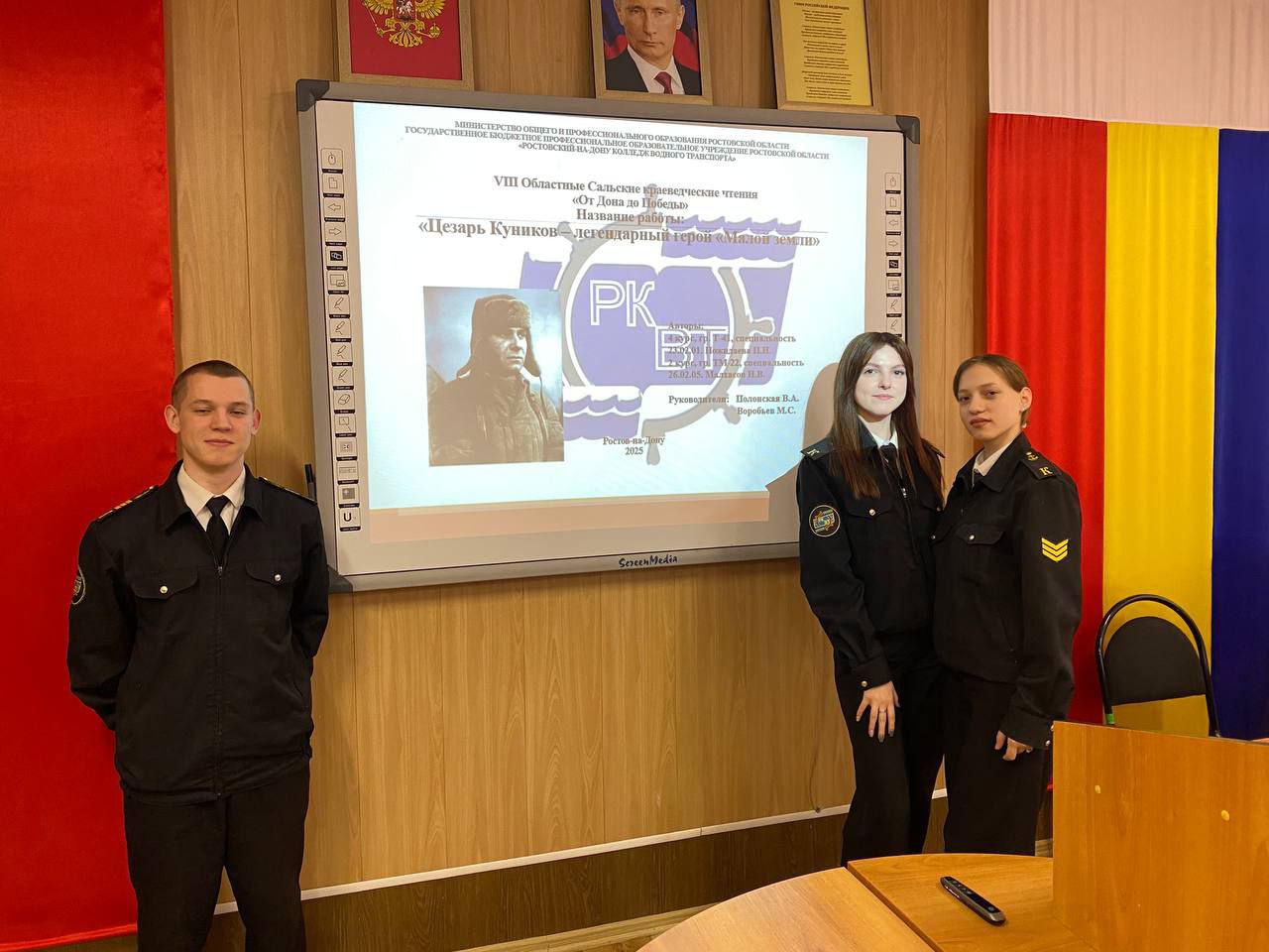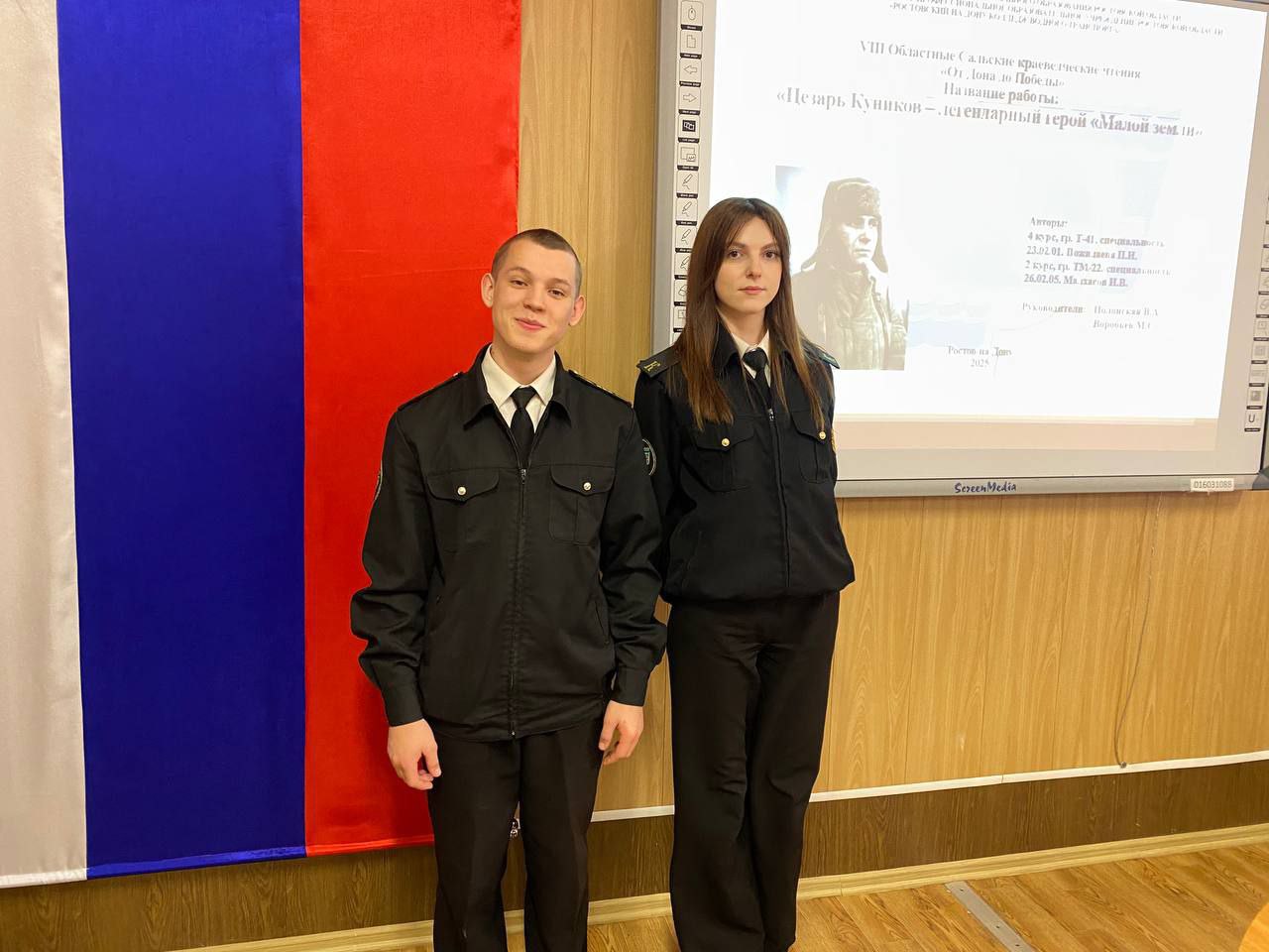 Сертификатом участников Чтений награждены курсанты Малхасов Игорь и Пожидаева Полина, представившие историко-краеведческий доклад "Цезарь Куников - легендарный герой "Малой Земли" (руководитель: преподаватель Полонская В.А.).