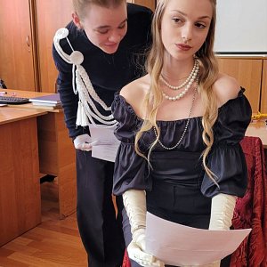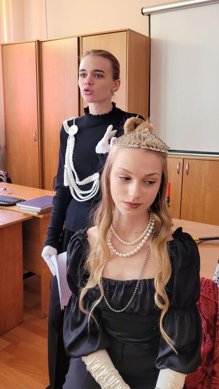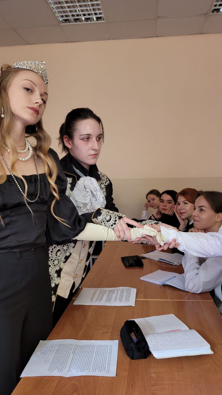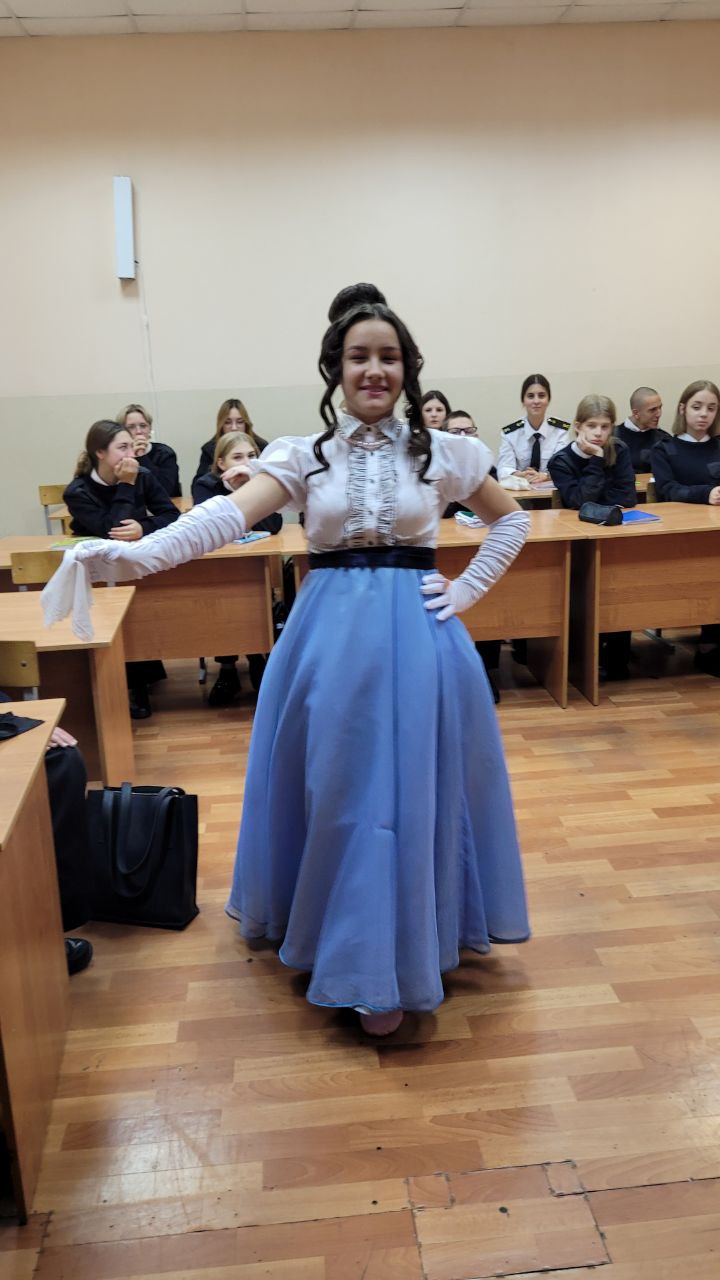 В течение ноября 2023 года в ГБПОУ РО «Ростовский-на-Дону колледж водного транспорта» в группах первого курса специальности «Организация перевозок и управление на транспорте» Т-11, Т-12 и Т-13 завершилось театрализованное изучение романа Л.Н. Толстого "Война и мир". В образах литературных героев и их исторических прототипах предстали курсанты колледжа. Самую плодотворную работу, творческий потенциал проявила группа Т-11, где все до единого ученика примерили на себе образы героев романа. Девочки переработали не только первоисточник, пересмотрели экранизации, вложили фантазию в костюмы и аксессуары, но и привлекли исторический материал, подготовили несколько презентаций. Приятно отметить, что у всех курсантов нашего колледжа первокурсницы находили поддержку, помощь и одобрение. Результатом такой дружной работы стали не только глубокие знания, но и готовность других групп проявить свои творческие начала.