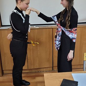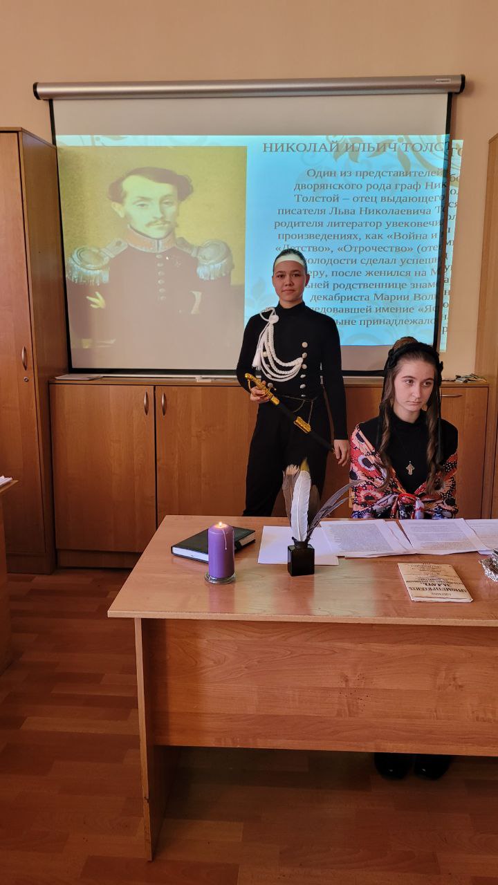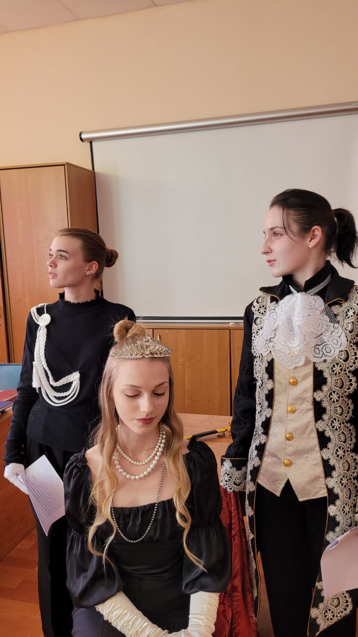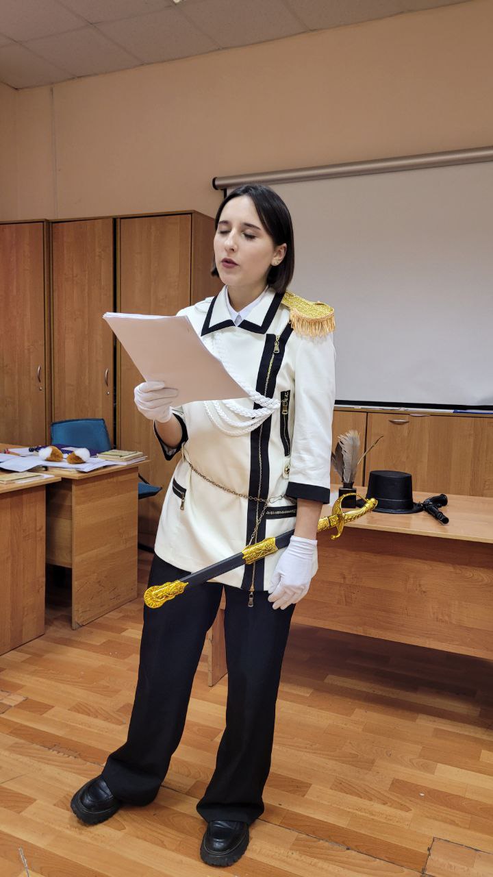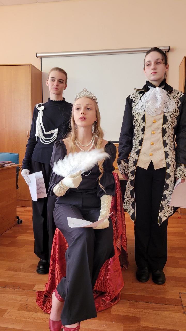 В течение ноября 2023 года в ГБПОУ РО «Ростовский-на-Дону колледж водного транспорта» в группах первого курса специальности «Организация перевозок и управление на транспорте» Т-11, Т-12 и Т-13 завершилось театрализованное изучение романа Л.Н. Толстого "Война и мир". В образах литературных героев и их исторических прототипах предстали курсанты колледжа. Самую плодотворную работу, творческий потенциал проявила группа Т-11, где все до единого ученика примерили на себе образы героев романа. Девочки переработали не только первоисточник, пересмотрели экранизации, вложили фантазию в костюмы и аксессуары, но и привлекли исторический материал, подготовили несколько презентаций. Приятно отметить, что у всех курсантов нашего колледжа первокурсницы находили поддержку, помощь и одобрение. Результатом такой дружной работы стали не только глубокие знания, но и готовность других групп проявить свои творческие начала.