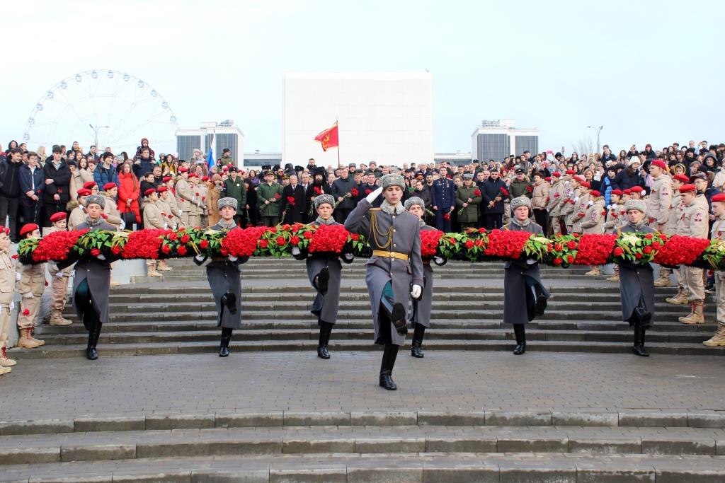 Возложение цветов и венком к Стеле «Освободителям Ростова» в честь второго освобождения города Ростова-на-Дону от немецко-фашистских захватчиков.