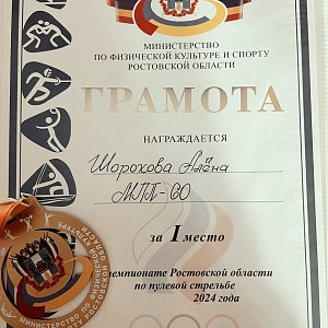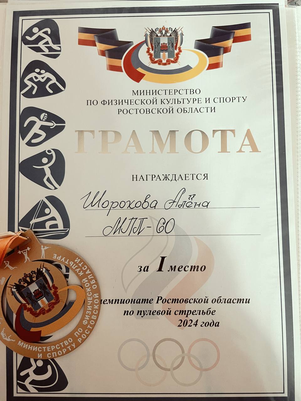 22 ноября 2024 года курсант ГБПОУ РО "Ростовский-на-Дону колледж водного транспорта ", группы Т-11, Шорохова Алёна приняла участие в Чемпионате Ростовской области по пулевой стрельбе из малокалиберного и пневматического пистолета, который проходил с 18 по 22 ноября 2024 года.